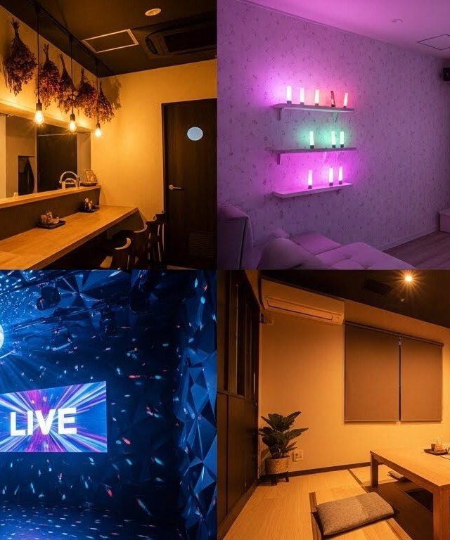 このように、多様な目的や気分に応じた部屋が揃っており、友人同士での集まり、推し活、まったり時間、ゲームやおしゃべり、いろんな楽しみ 方ができるようになっている。